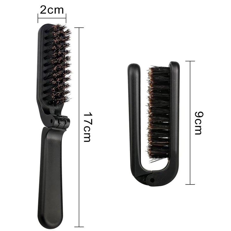 Travel Folding Boar Bristle Brush - Collapsible Anti-Static Pocket Hair Styling Tool for Women and Men