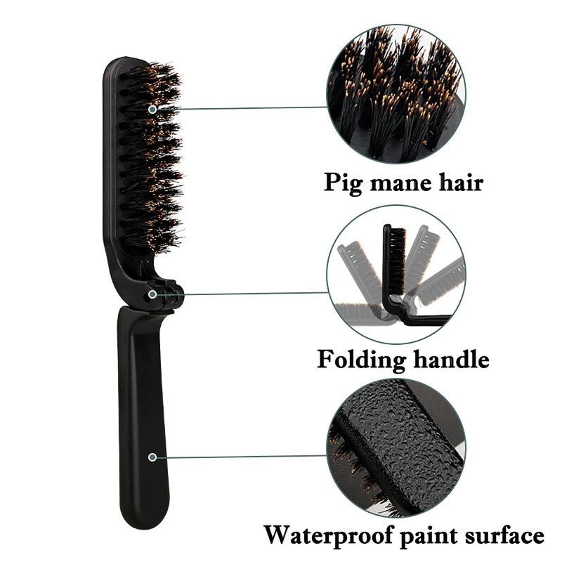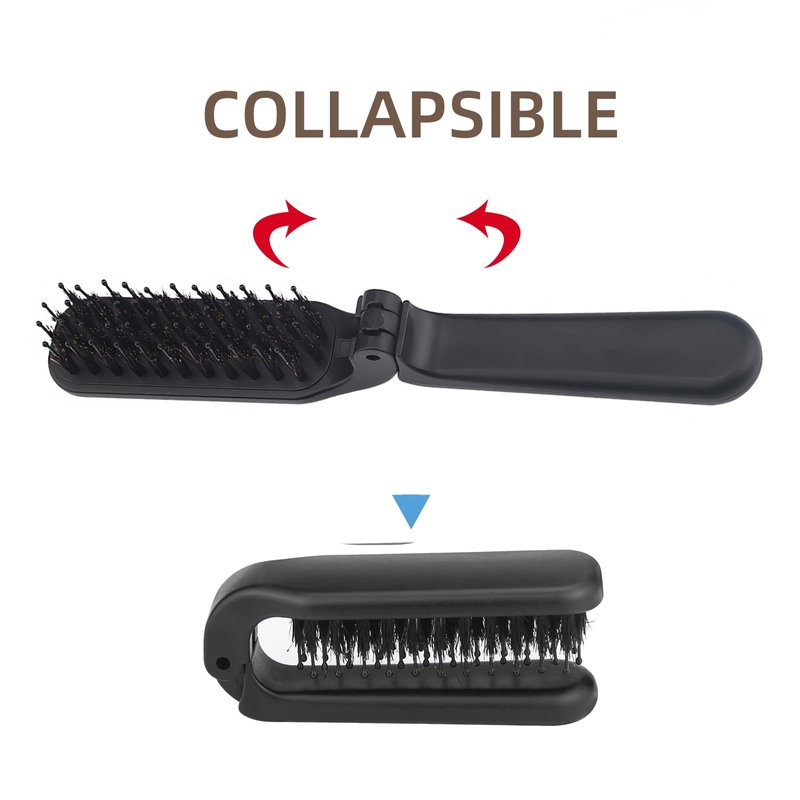 Travel Hair Brush Foldable Hairbrush Pocket-fit Mini Hairbrush Wild Boar Bristle Travel Hairbrush for Men, Women and Children Compact Finishing Hairbrush Dry and Wet Straight Curls (black)