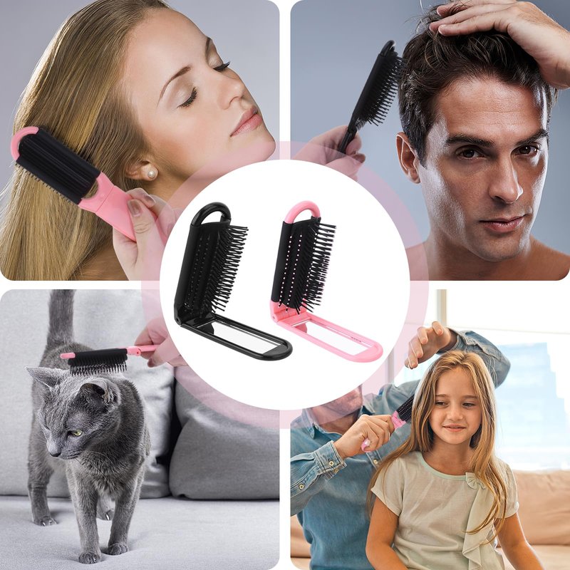 Travel Hair Brush with Mirror, 2 PCS Folding Comb Hair Massage Comb Compact Hair Brush Mini Hair Brush for Purse Small Wet Hair Brush for Women Men