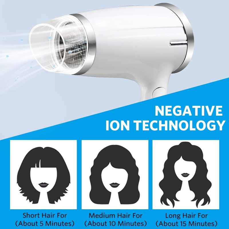 - 【Compact Folding Hair Dryer】:This mini travel hair dryer is very small can fold to size (4*6.5inch) and lightweight(1lb),which is just small as a cell phone and more important is it’s lighter than a power bank.Means that it takes up little space in your travel package and is great for business trips.