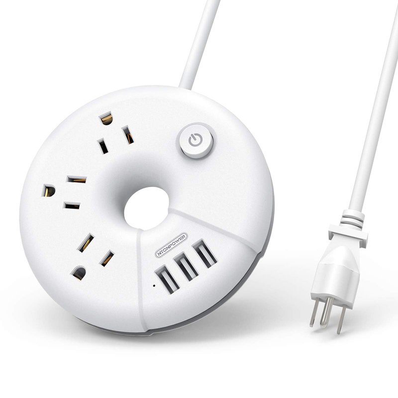 - 【 Power Strip Extension Cord with Multiple Outlets & USB 】 USB desktop power strip with switch comes with 3 AC outlets 3 USB charging ports and supports a wide range of voltage (100-240V), so you can simultaneously charge your iphone, ipad, camera, smartphone, laptop or tablet when traveling abroad. Never have to worry that you may lack of outlets for your devices with circle power strip.