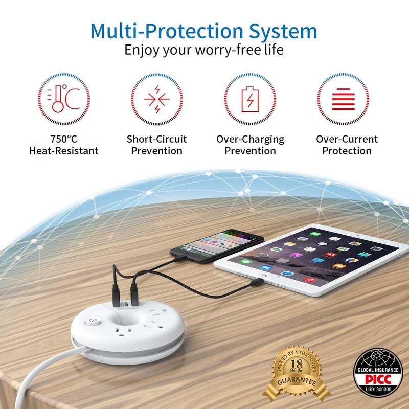 - 【 HASSLE FREE PURCHASE 】 No worries at all if Amazon return window closed after 1 month. Directly contact us within the *18 months warranty for quality-related replacement or refund. NTONPOWER travel power strip with usb also backed by *$300, 000 connected device liability insurance. Please DO NOT plug in highly power-consuming appliances, such as hair dryers or steam irons.