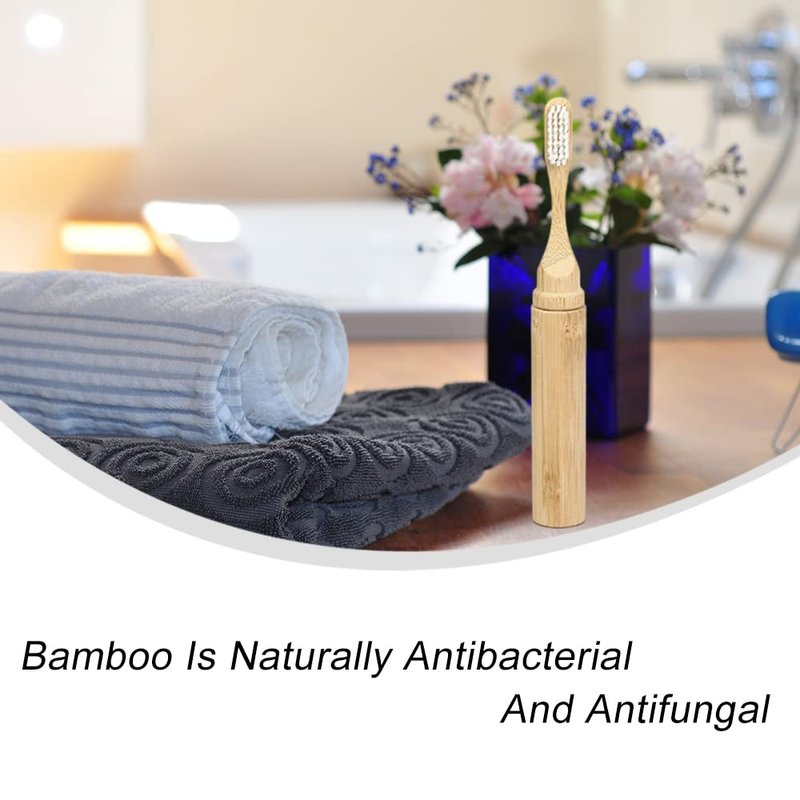 - 【Natural Bamboo Material】travel toothbrush kit is stronger and harder than wood, and more durable than any plastic. You don't need to dry the toothbrush handle after use, just rinse the toothbrush and put it back in the toothbrush holder, just like you do with other plastic toothbrushes.