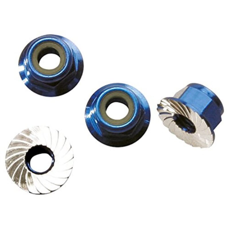 Traxxas 1747R Blue-Anodized Aluminum 4mm Flanged, Serrated Lock Nuts (Set of 4)