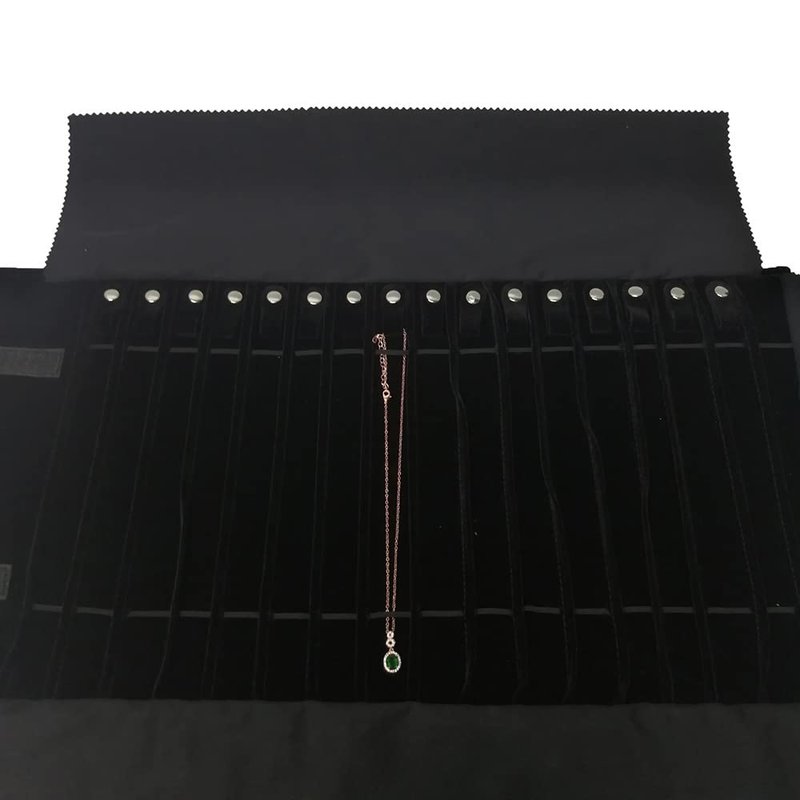 treachi Portable Jewelry Roll Necklace Travel Storage Displays Holder 16 Chain Black Elastic