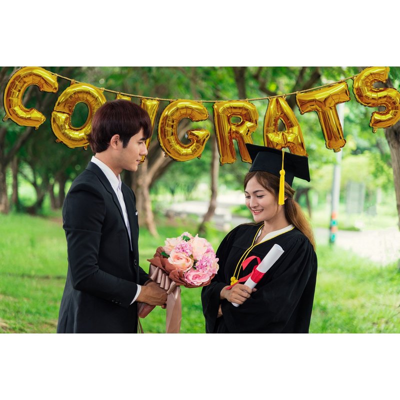 - VERSATILE SUPPLIES: Our gold congrats balloon banner can be used both indoors and outdoors, and will last throughout the entire event. Our gold grad balloons are perfect for any occasion, from weddings and graduations to promotions and new babies.