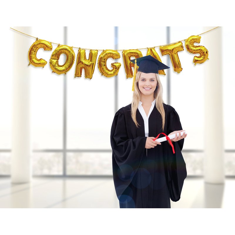- 8 gold 16" letter balloons to spell "CONGRATS" (NOT helium supported)