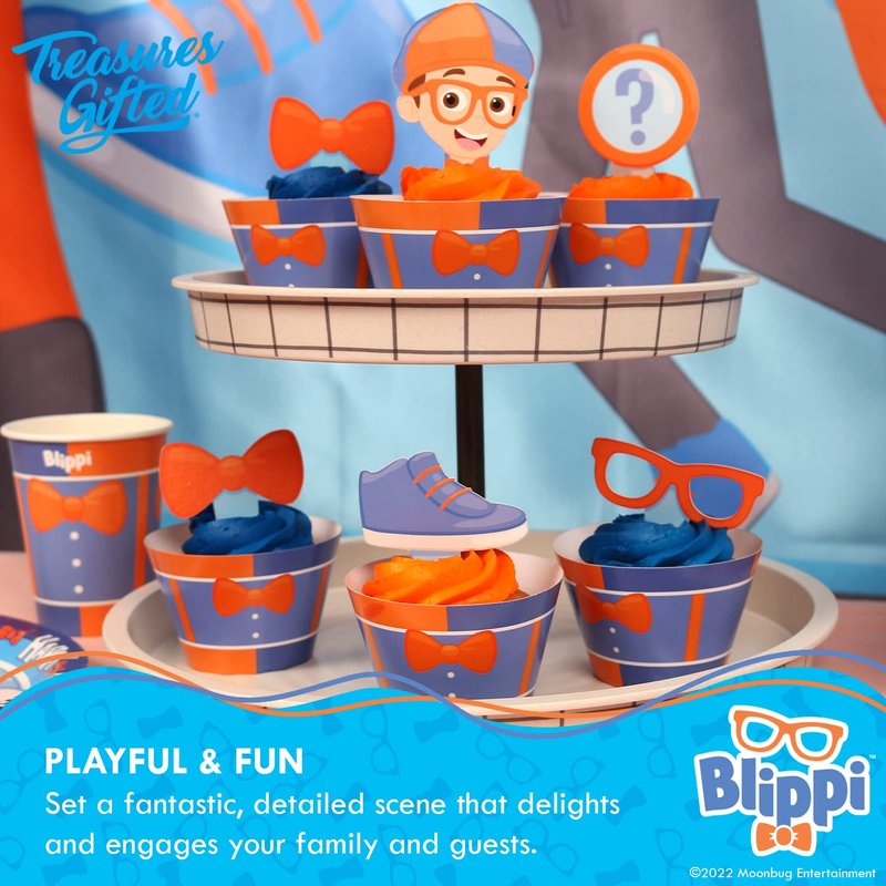 - PARTY WITH BLIPPI: Have a fun & exciting day planned with your child’s favorite friend with our Blippi cupcake wrappers and toppers. This kit includes everything you need to quickly & easily create the Blippi themed desserts of your little one’s dreams!