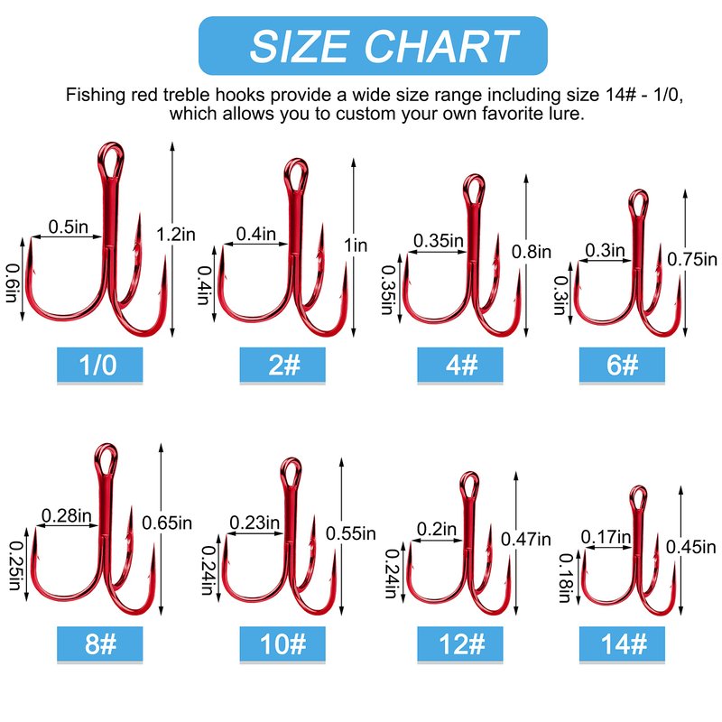 - Widely Used: These treble hooks are the great replacement for fish rigs and fish spinners, great for bass, trout, carp, eel and salmon species, ect.