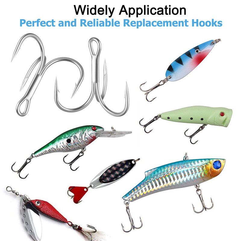 - Widely Used: These treble hooks are the great replacement for fish rigs and fish spinners, great for bass, trout, carp, eel and salmon species, ect.