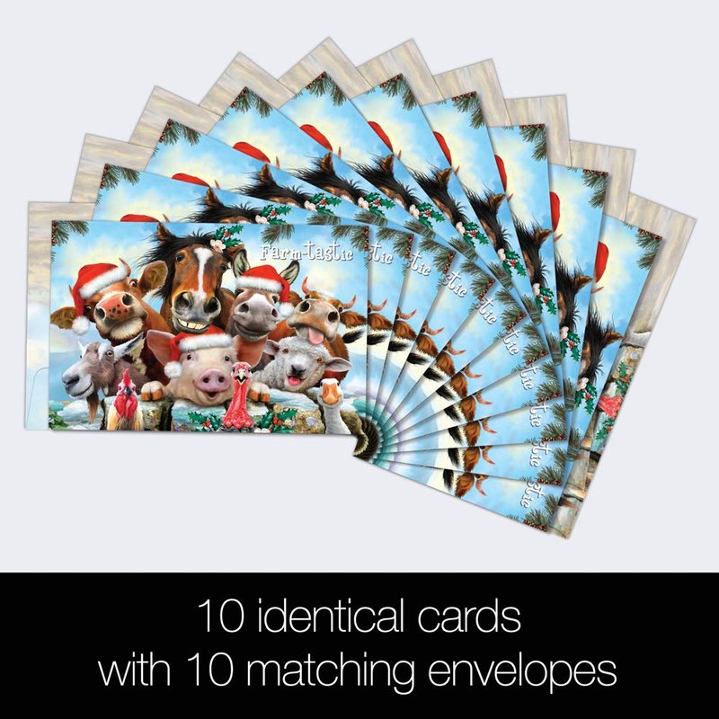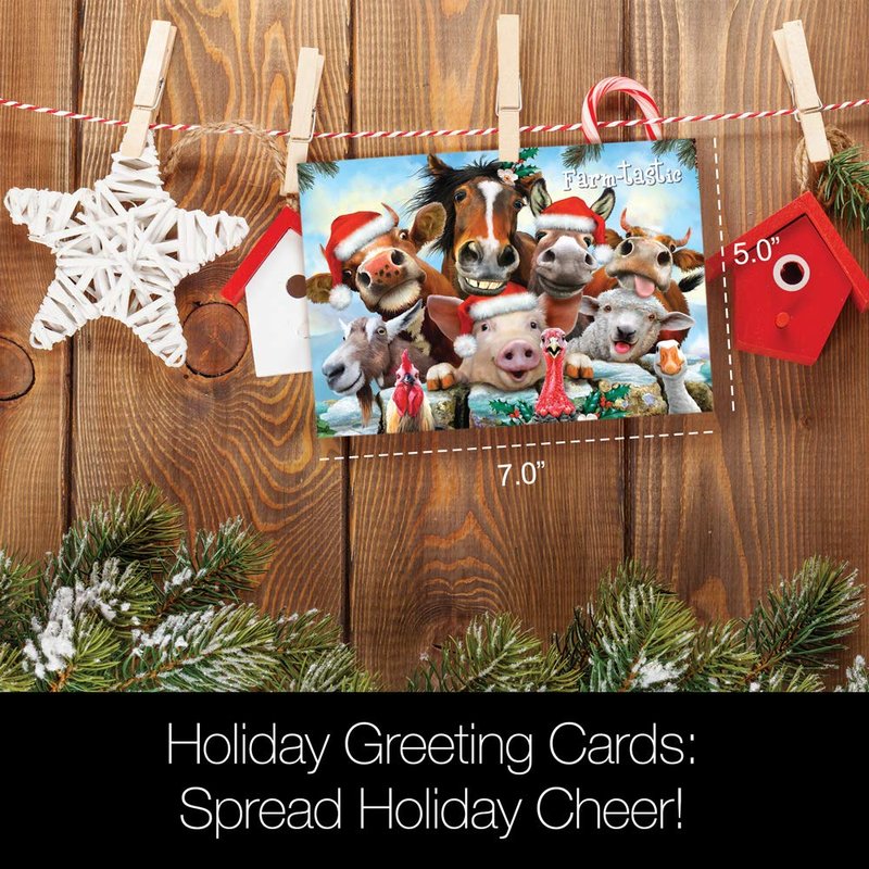 Tree-Free Greetings Christmas Cards and Envelopes, Holiday Card Set, 5 x 7 Inch Blank Cards, Box Set of 10, Farm-tastic Holiday, (HB93242)