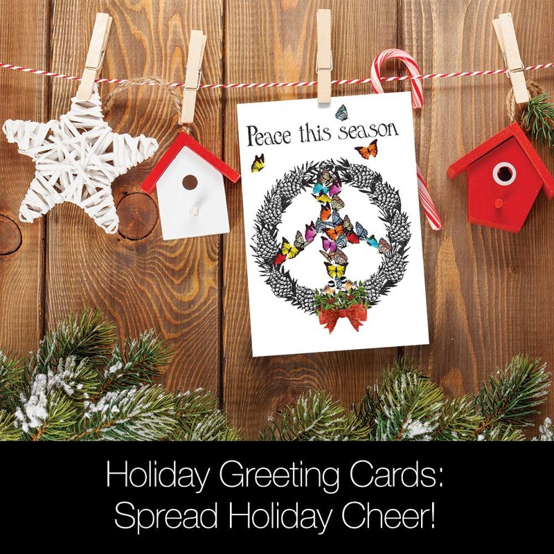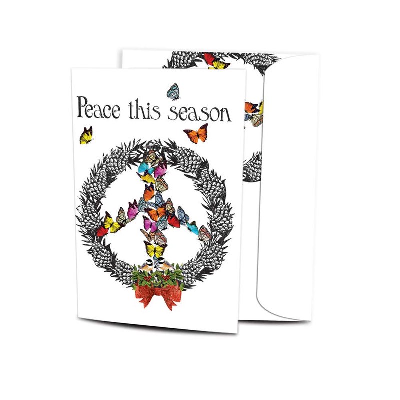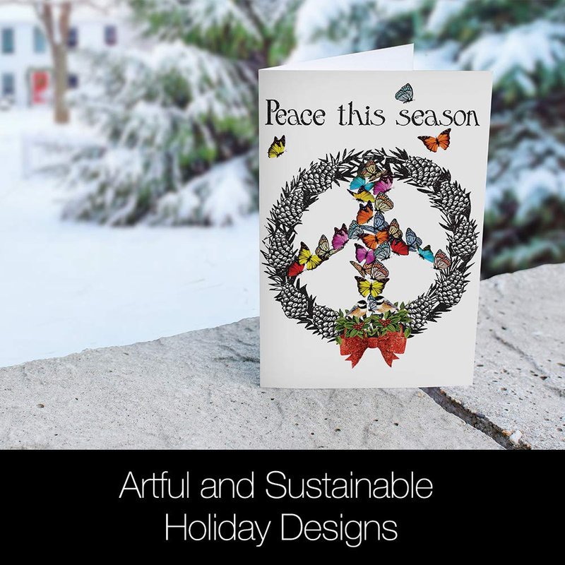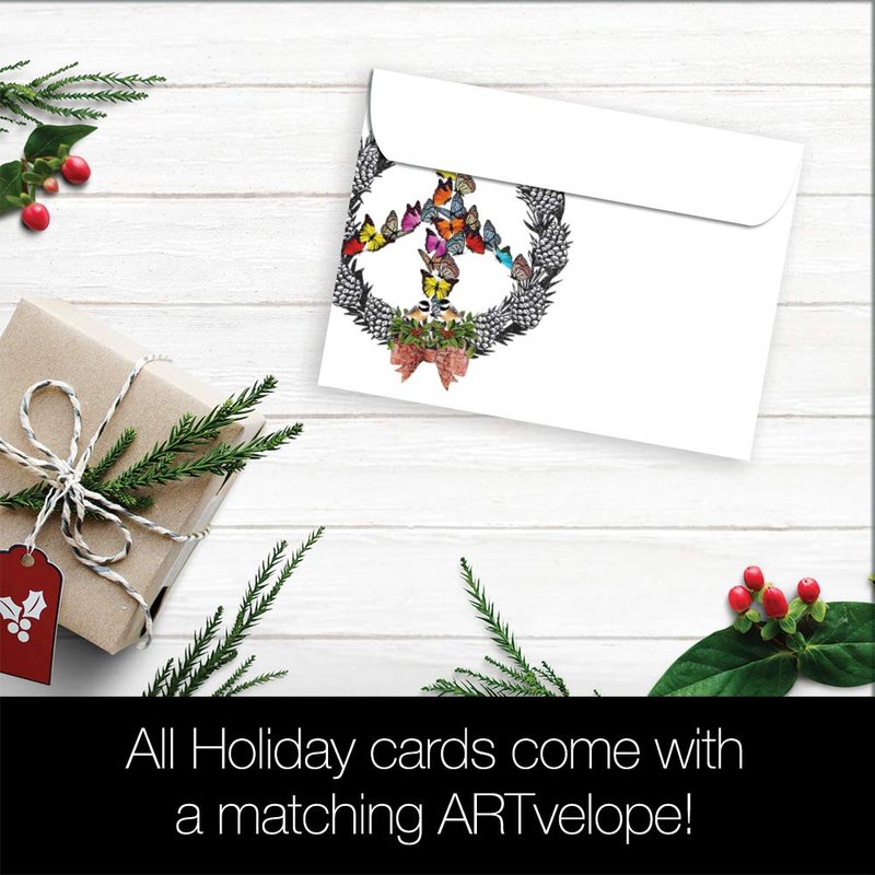Tree-Free Greetings Christmas Cards and Envelopes, Holiday Card Set, 5 x 7 Inch Cards, Holiday Box Set of 10, Peace Wreath, (HB93537)