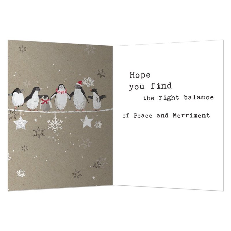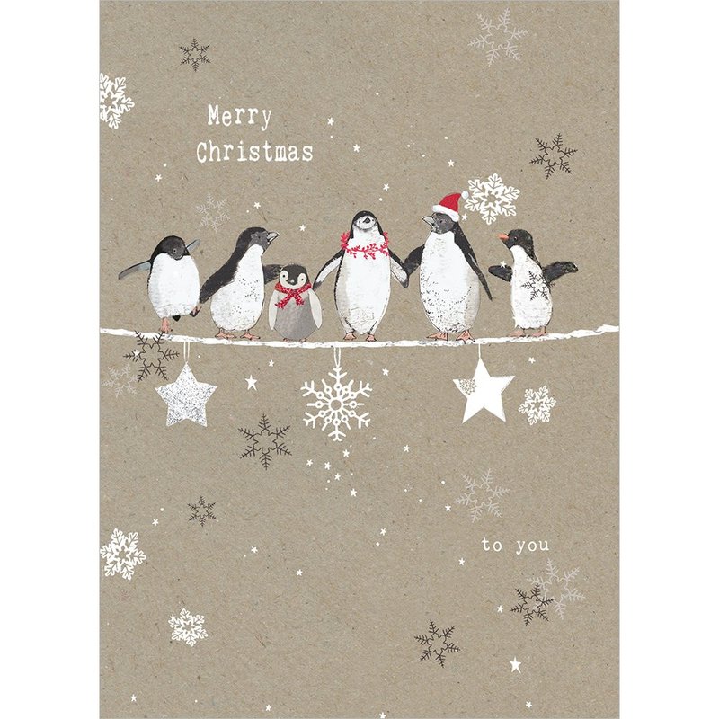 Tree-Free Greetings Holiday Greeting Cards, Penguin Merry Christmas, Vintage Brown Recycled Paper, Boxed Note Card Set, 10-Pack (HB93309)