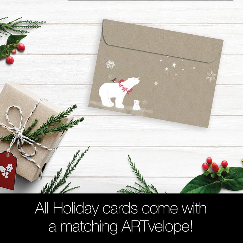 Tree-Free Greetings Holiday Greeting Cards, Polar Bear Merry Christmas, Vintage Brown Recycled Paper, Boxed Note Card Set, 10-Pack (HB93300)