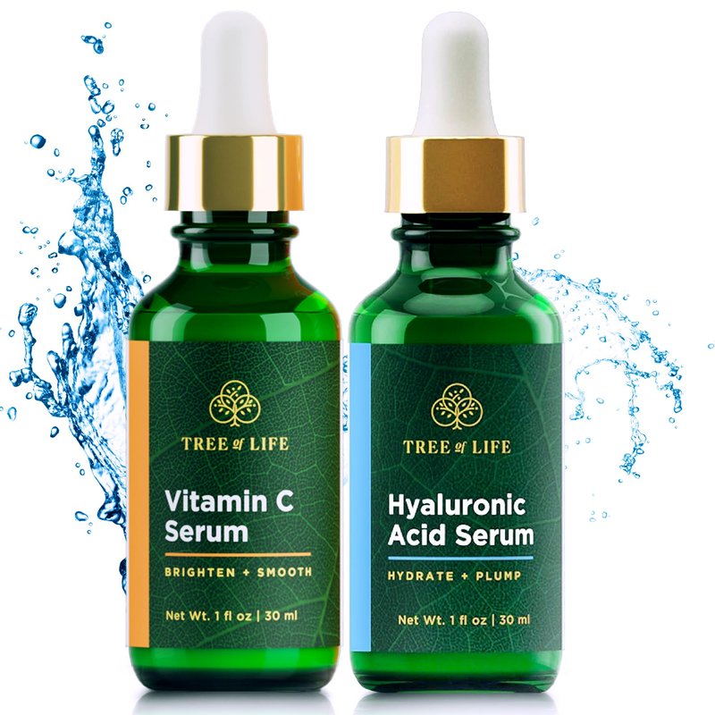 Tree of Life Facial Skin Care Set, Brightening, Firming, Hydrating, Dry Face, Dermatologist Tested - Vitamin C and Hyaluronic Acid Facial Serum - Skin Care Kit, 2 count of 1 Fl Oz