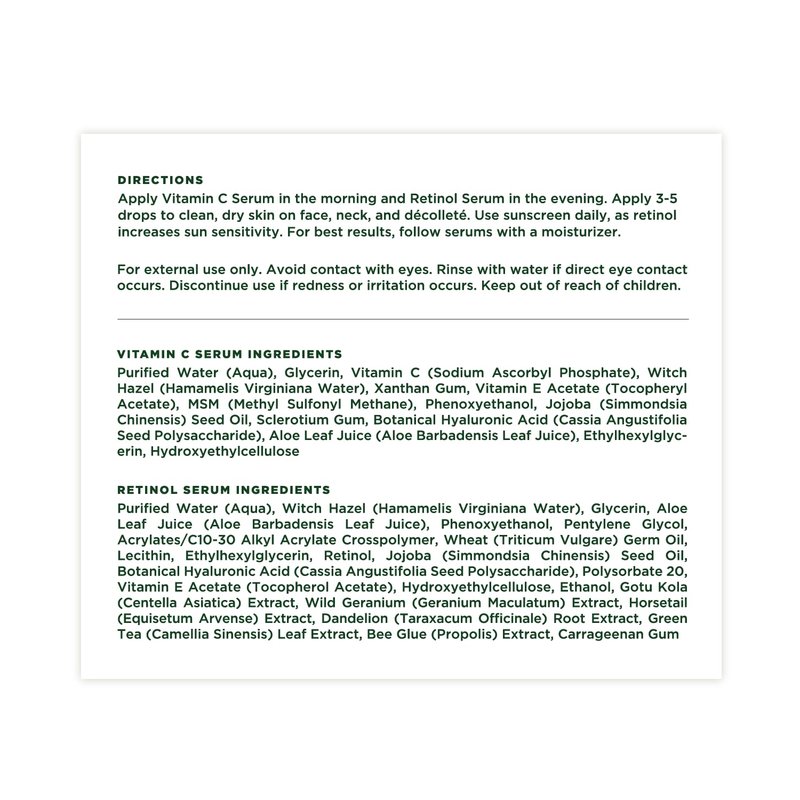 Tree of Life Facial Skin Care Set, Brightening, Firming, Hydrating, Dry Face, Dermatologist Tested - Vitamin C Serum (Brightens) + Retinol Serum (Smooths) - Skin Care Kit, 2 count of 1 Fl Oz