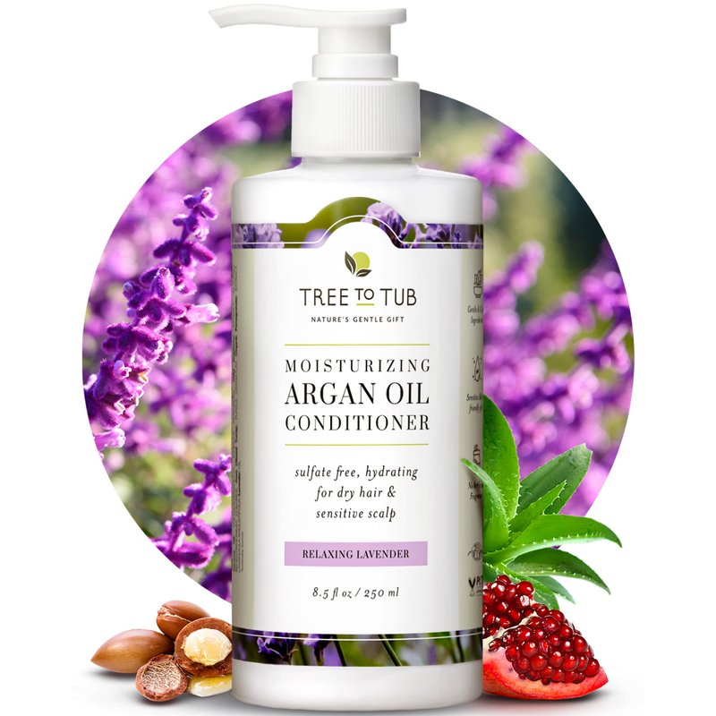 Tree to Tub Moisturizing Conditioner for Dry Hair & Dry Scalp - Hydrating Sulfate Free Argan Oil Conditioner & Vegan Hair Moisturizer for Women & Men w/Organic Coconut Oil, All Natural Lavender