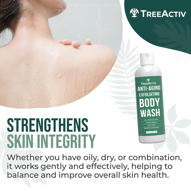 - Revitalize and Moisturize: TreeActiv anti-aging exfoliating body wash revitalizes your skin, leaving it moisturized and ready to take on the day. Experience a dazzling transformation that boosts your skin's natural radiance.