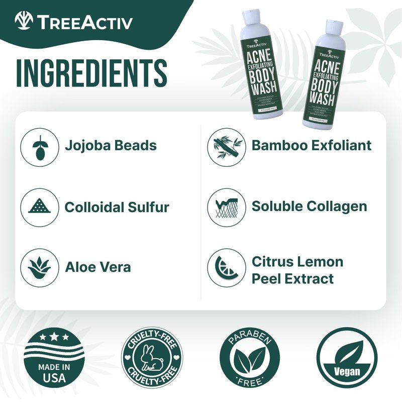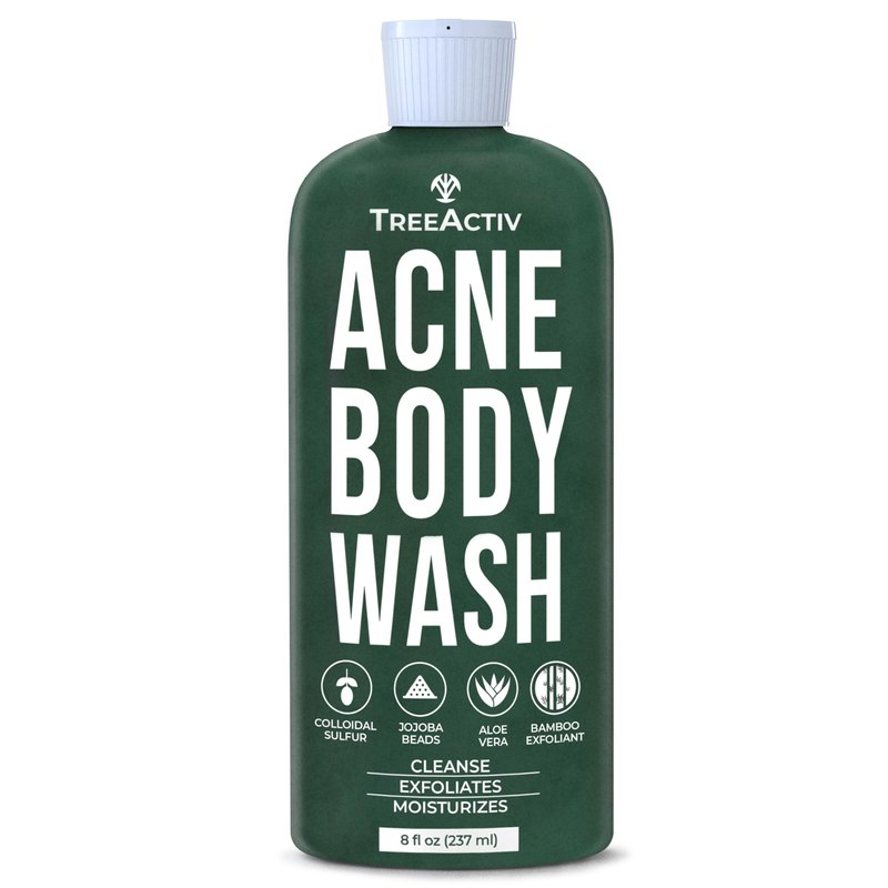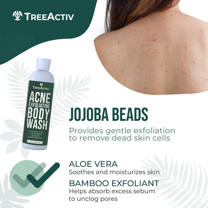 TreeActiv Exfoliating Acne Body Wash 8 fl oz Body Acne Wash for Back, Chest, Shoulder, Back Acne Treatment with Jojoba Beads, Back Acne Body Wash for Bacne, Soothing Body Acne Treatment for Men, Women
