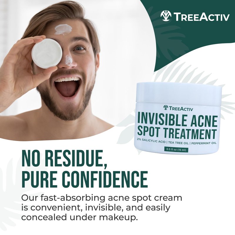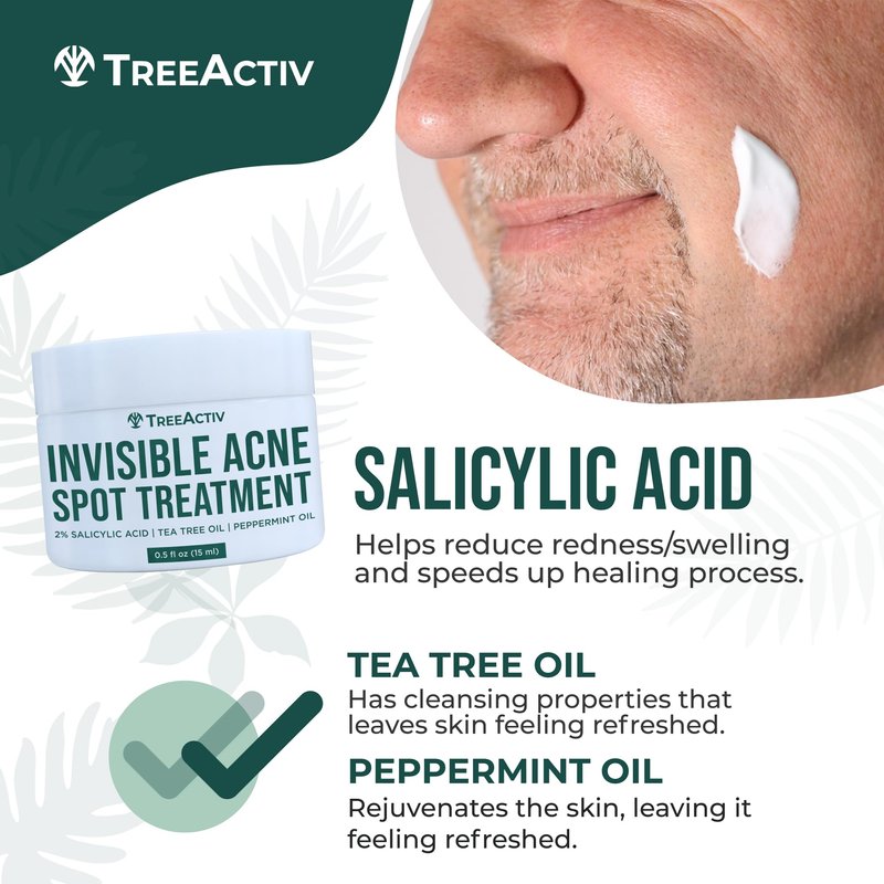 Whether you're battling blackheads, hormonal breakouts, or even cystic acne (cystic acne treatment for face, cystic hormonal acne treatment, cystic acne overnight treatment), TreeActiv has you covered. This versatile salicylic acid cream for face (salicylic acid face cream, 2% salicylic acid, salicylic acid 2% solution, salicylic acid 2%) works wonders on any acne types, promoting a well-rounded approach to clear skin, acne prone skin care, acne skin care.