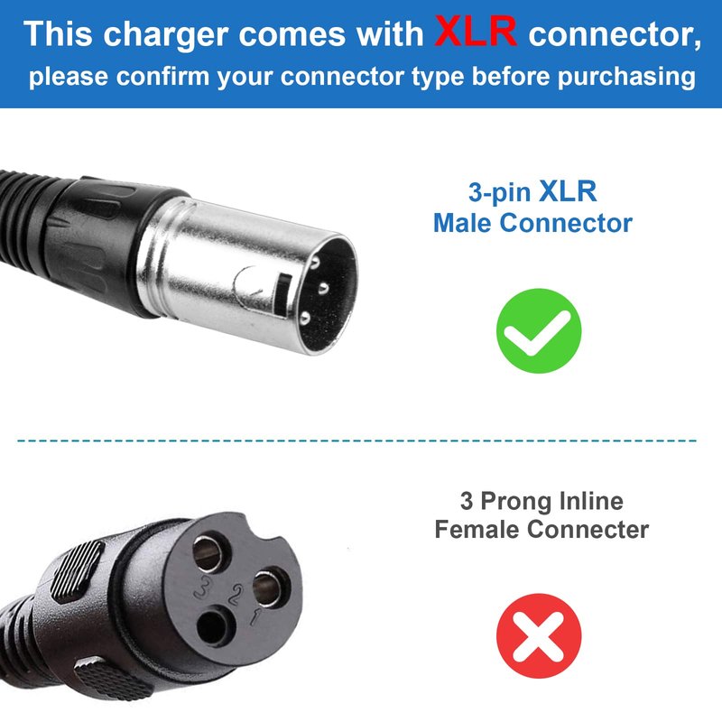 TREE.NB 24V 5A Lead Acid Battery Charger 3-Pin Male XLR Connector for Electric Bike, Wheelchair, Mobility EA1065, S150 180 X-CEL, Jazzy Power Chair, Drive Medical, Rascal 200T/500T/301 PC