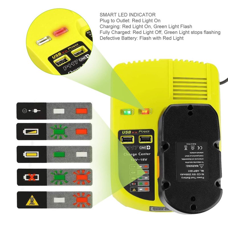- 【Wide Compatibility】the dual chemistry IntelliPort fast battery Charger is perfectly compatible with Ryobi 12-18V battery P100 P101 P102 P103 P104 P105 P106 P107 P108 P200 P122 ABP1801 130224010 1400652.(Please Note: Not compatible with 12V lithium battery.)