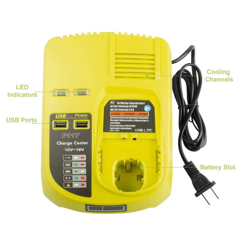 ☞Package Included: 1*pcs Replacement P117 Battery Charger replacement for Ryobi 12V-18V Lithium-Ion & NiCad NiMh Batteries