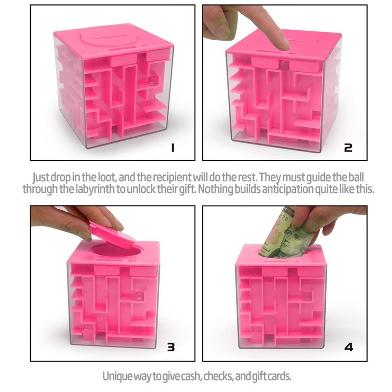 - After puzzle box is solved and gift is took out, the maze box can be a piggy bank as the lid has a slot for coins or folded bills and the money maze puzzle box can be used again and again. These Money Maze Boxes are sturdy, entertaining and safe for children