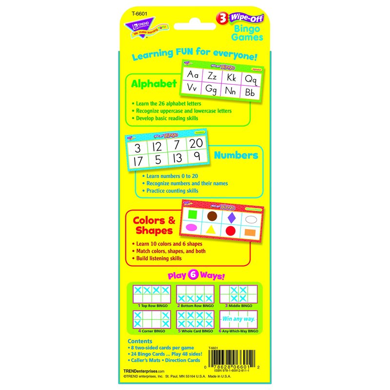 TREND Alphabet, Numbers, Colors & Shapes Wipe-Off Bingo Game Enterprises, Inc.