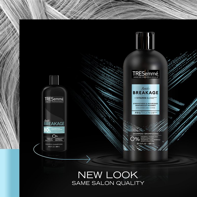 - WITH VITAMIN BLEND; TRESemmé Anti-Breakage shampoo for damaged hair strengthens and nourishes damaged strands, leaving hair healthy-looking and strong