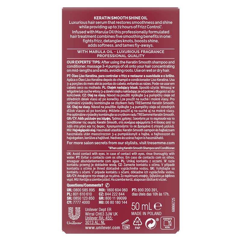 TRESemmé Pro Collection Keratin Smooth Shine Oil With Marula Oil, 50ml