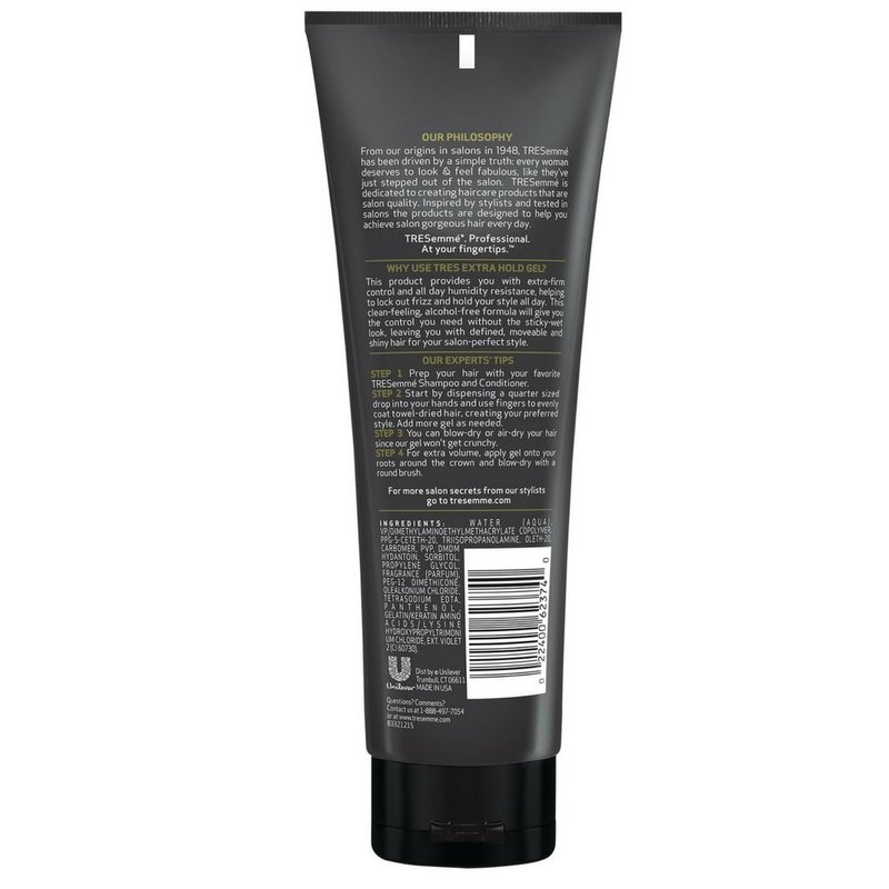 - TRESemme TRES Extra-Firm Control Gel provides resistance to humidity all day long while continuously holding your style strong