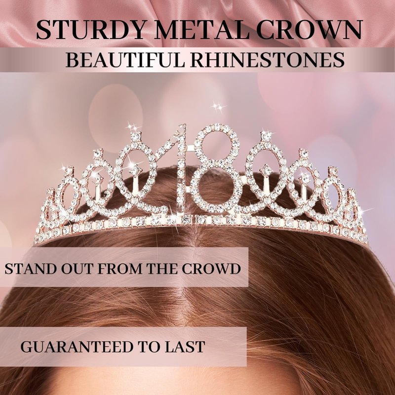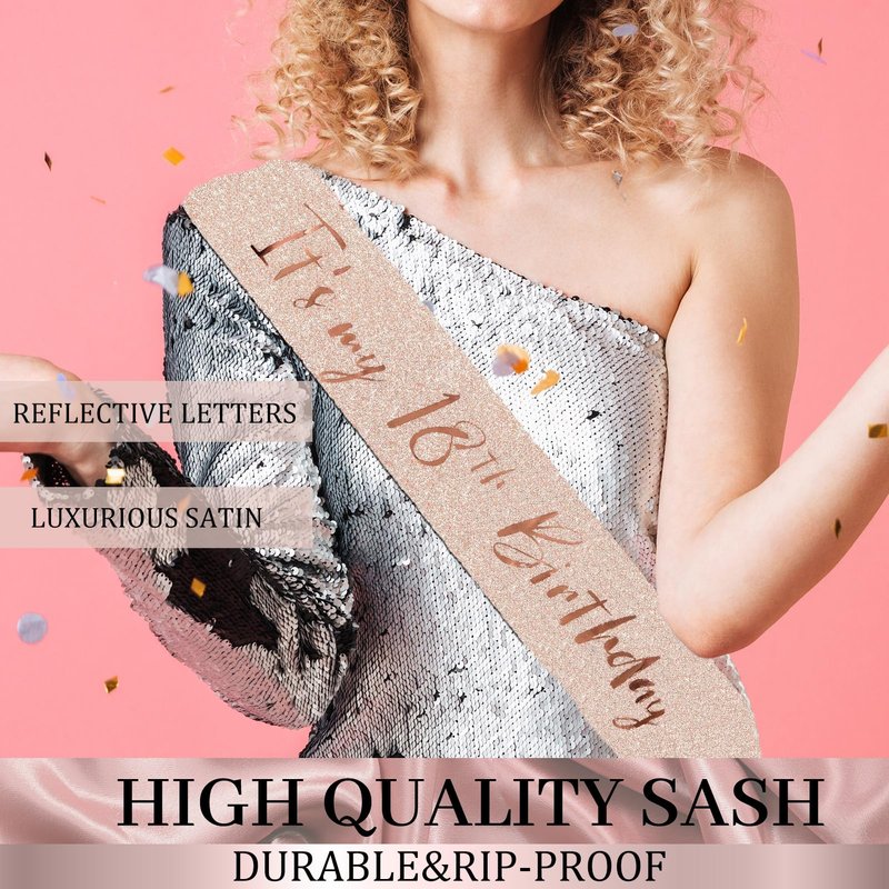 - 👑[18th Sash for girls] The rose gold birthday sash is made from high quality glitter fabric and printed with rose gold foil words. Elegant and gorgeous! The sash is in 63inch length and comes with a pretty pearl pin. You can adjust the length by using the pearl pin in the package. Th pin also put the perfect finishing touch on your party outfit.