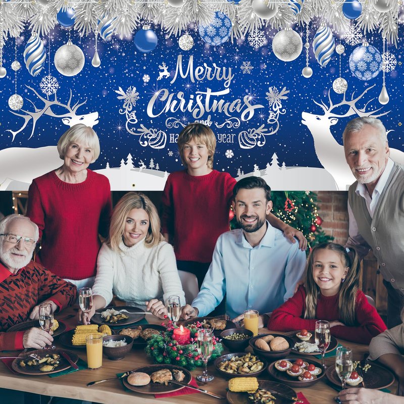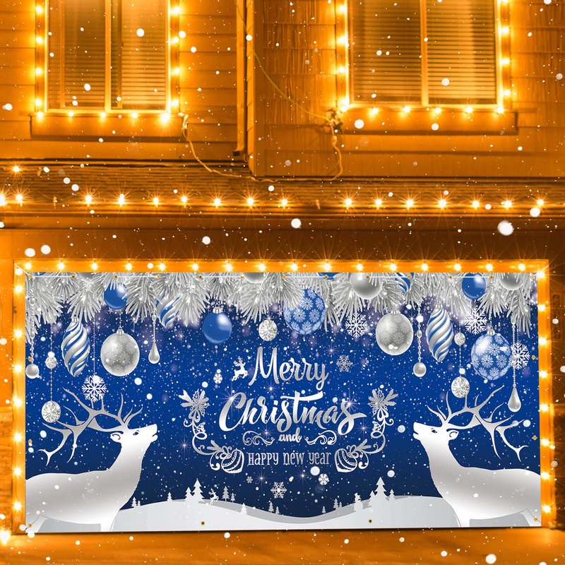 - 【Durable Material】Large Christmas New Year backdrop is made of durable polyester fabric, which is light, easy to carry, washable and tear resistant. It is very suitable for garage door outside. It can also be used as wallpaper, curtain and photo background.