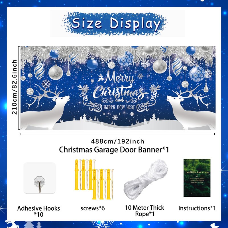 - 【What You Get】 Package Includes: 1 x Christmas Garage Door Banner 7 x 16 ft, 2 x Rope,10 x adhesive fasteners; Its size and pattern are very suitable for the background of the Christmas theme party, making the party full of vitality and fun.