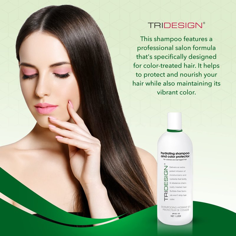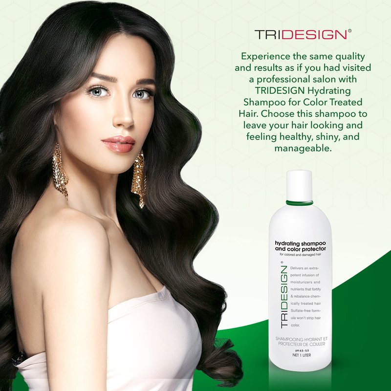 - EXPERIENCE TRIDESIGN: Taking the time for self-care is essential to our well-being. For 40 years, we have built memorable salon moments. Tridesign hydrating shampoo and color protect an extra-potent infusion of moisturizers and nutrients that fortify and rebalance chemically treated hair. This shampoo for dry hair gently cleanses as it balances the hair's moisture for a weightless, soft finish. Our signature fragrance, massage, and unique caring formulas elevate any salon-style service.