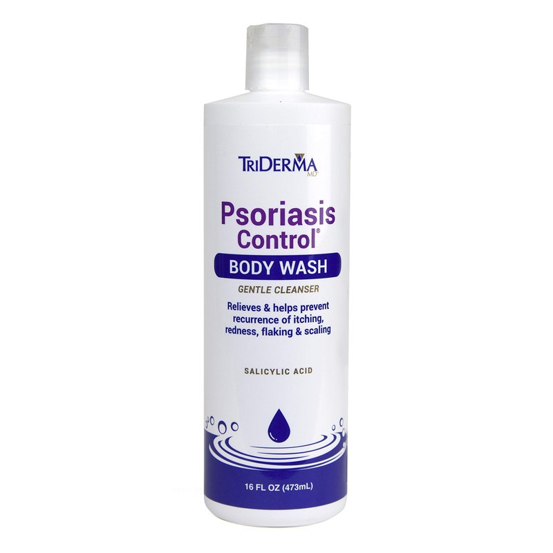 TriDerma Psoriasis Control Body Wash - Gentle 2% Salicylic Acid Cleanser, AP4 Aloe Vera Gel - Psoriasis Treatment Soothes Itching, Redness, Flaking - No Cortisone or Coal Tar - 16 oz