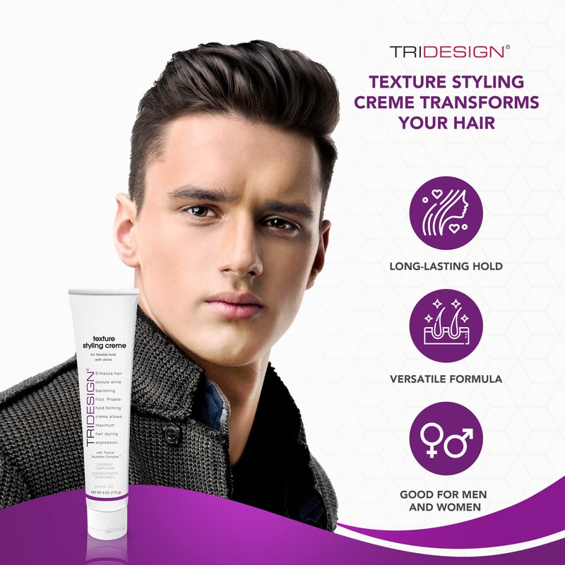 - A SMALL AMOUNT CAN GO A LONG WAY: TRIDESIGN Texture Styling Creme offers value for money since a small amount is enough for one's preferred hairstyle. Our hair styling cream instantly controls the style, managing and making frizz less visible. It adds texture and substance to the hair but is surprisingly lightweight.