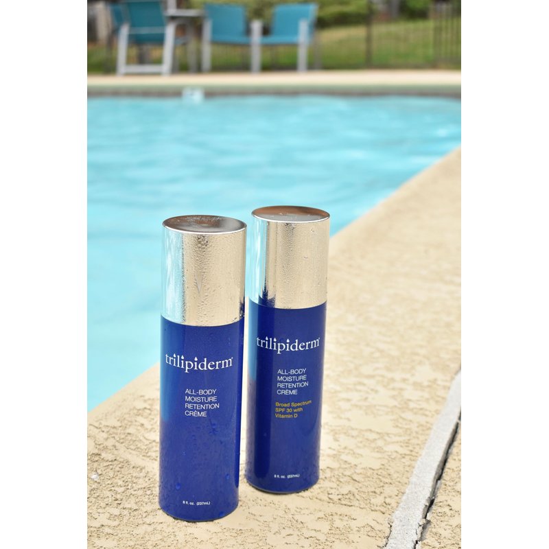 Trilipiderm Weekender Bundle – All-Body Moisture Retention Crème Broad Spectrum SPF 30 with Vitamin D and All-Body Moisture Retention Crème, 8 Ounce Airless Pump Bottles