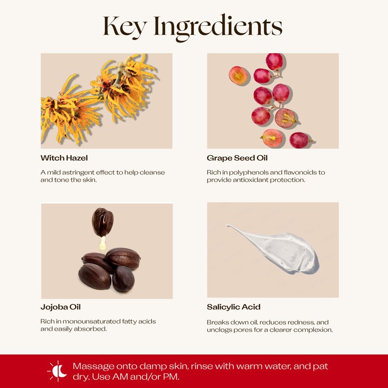 - Balances and Tones: Formulated with witch hazel to balance excess oil and tone for clearer, tighter pores