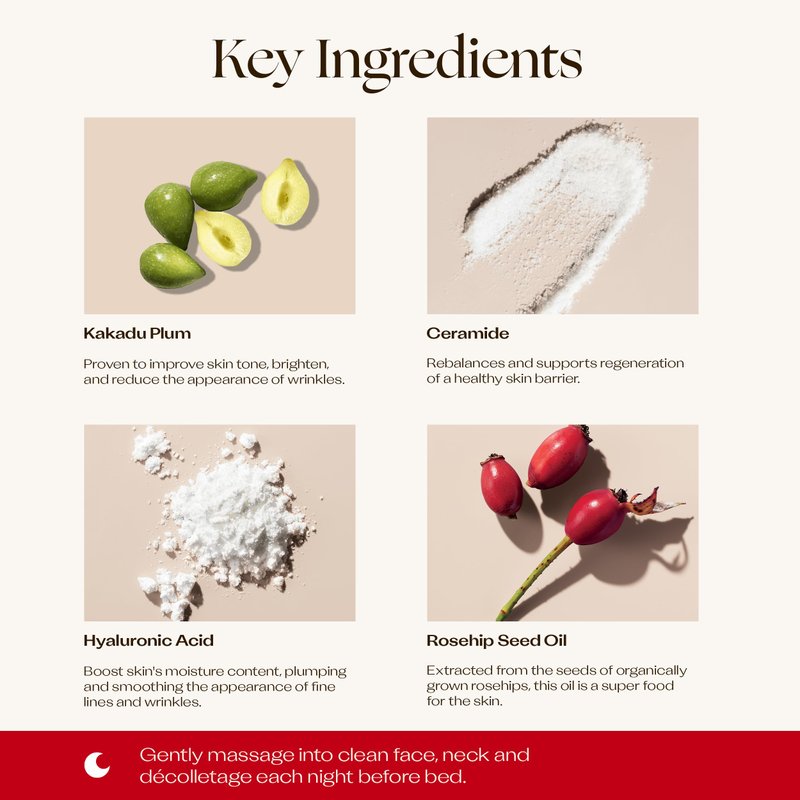 Trilogy Vitamin C Ceramide Night Cream - Hydrate and Brighten Dull Skin, 2 Fl Oz.