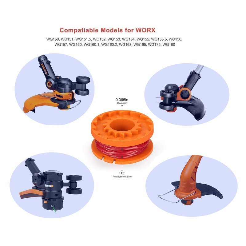 - 1️⃣Trimmer Spool Line for Worx,Line String Trimmer Replacement Spool,11ft 0.065" Replacement Autofeed Edger Spool Compatible with Worx WG180 WG163 WG175 WA0010 & 50006531 Weed Eater String,Weed Wacker Spool Replacement Parts.