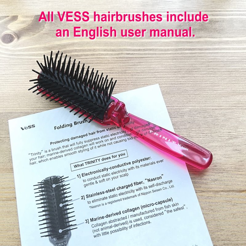 Trinity-Folding Hair Brush, Foldable Anti Static Hair Detangler Brush, Women Travel Size Hair Detangling Brush, Hair Styling Brush for Toiletry Bag Travel Purse Locker Gym