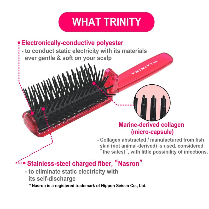 - Multi-Purpose Hair Brush: Our detangling hair brush uses stainless steel charged fibers and marine derived collagen to bring you a dry and wet hair brush for women that’s anti-static, detangles knots, and helps smoothen hair with a subtle shine making it the ideal choice for daily use
