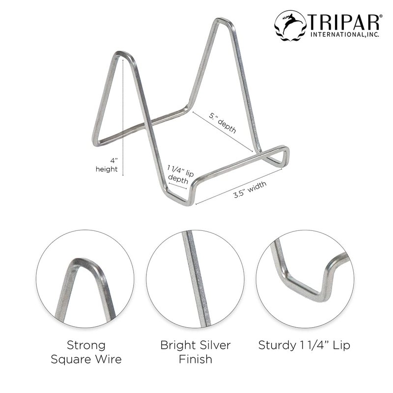 Tripar Square Metal Wire Stand, Silver Finish (4-Inch Depth) Tabletop Easel Display Handcrafted Edge Design Sleek & Modern Look - Perfect for Books, Plates, Photos & More