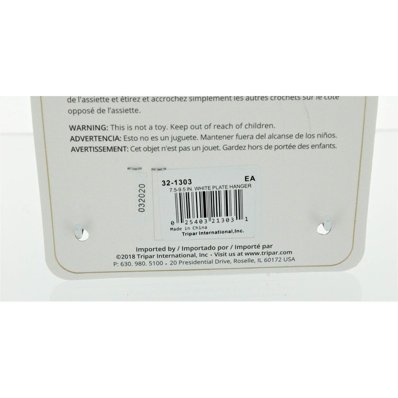 Tripar Plate Display Hanger Plate Wires With High Grade Steel Springs Suggested Weight 2 Lbs. Easy Fit Hook And Nail Included White Sturdy Vinyl Coated Wire 7-1/2 To 9-1/2 Price is indicated for bulk discounted quantity of 12 unit(s) per case.