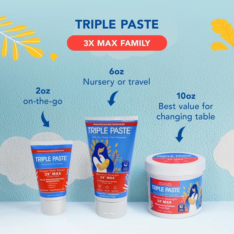 - Maximum strength medicated diaper rash cream: Triple Paste 3x Max contains 3 times more zinc oxide than our original diaper cream to quickly treat a severe diaper rash, sooth your baby’s bum and prevent future diaper rashes