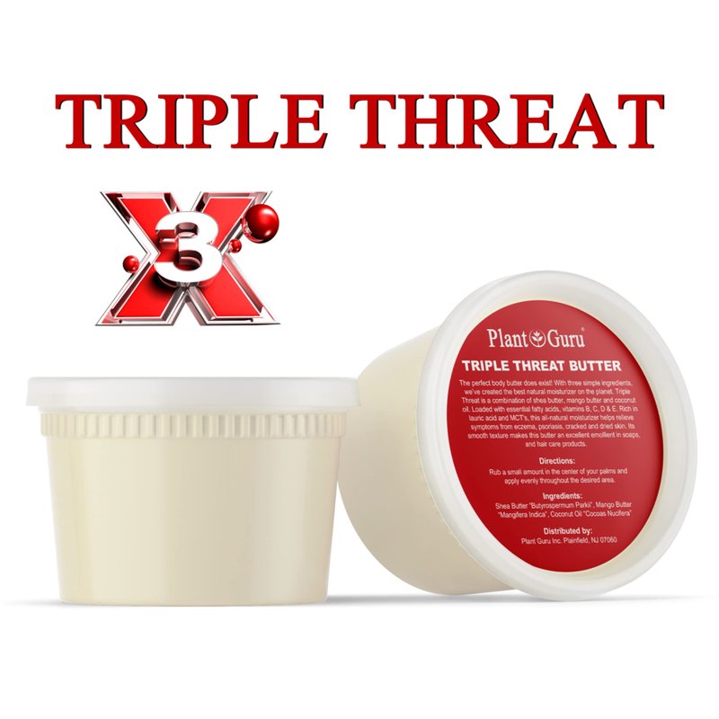 - ✅ TRIPLE THREAT - The perfect body butter does exist! With three simple ingredients, we’ve created the best natural moisturizer on the planet. Triple Threat is a combination of UNREFINED SHEA BUTTER, MANGO BUTTER and EXTRA VIRGIN COCONUT OIL.