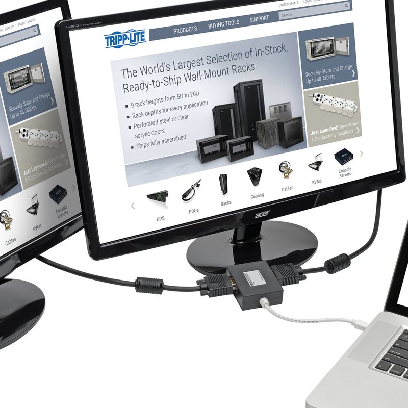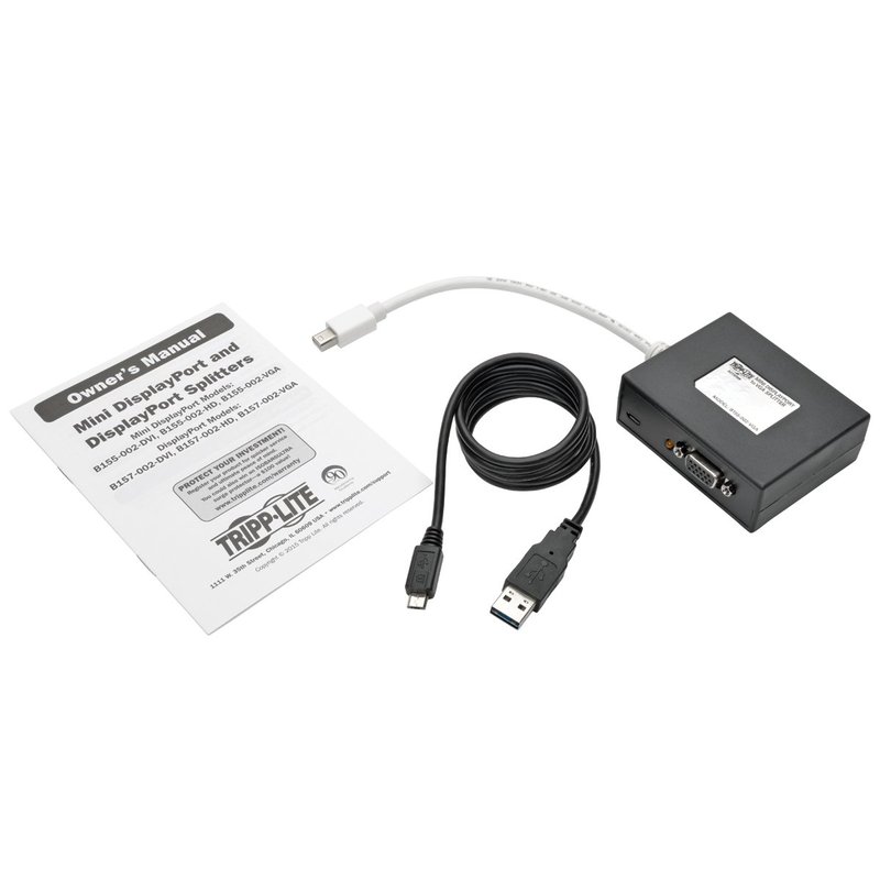 - Included components: B155-002-VGA 2-Port Mini DisplayPort to VGA Splitter , USB Micro-B cable, 3 ft., Owner’s manual