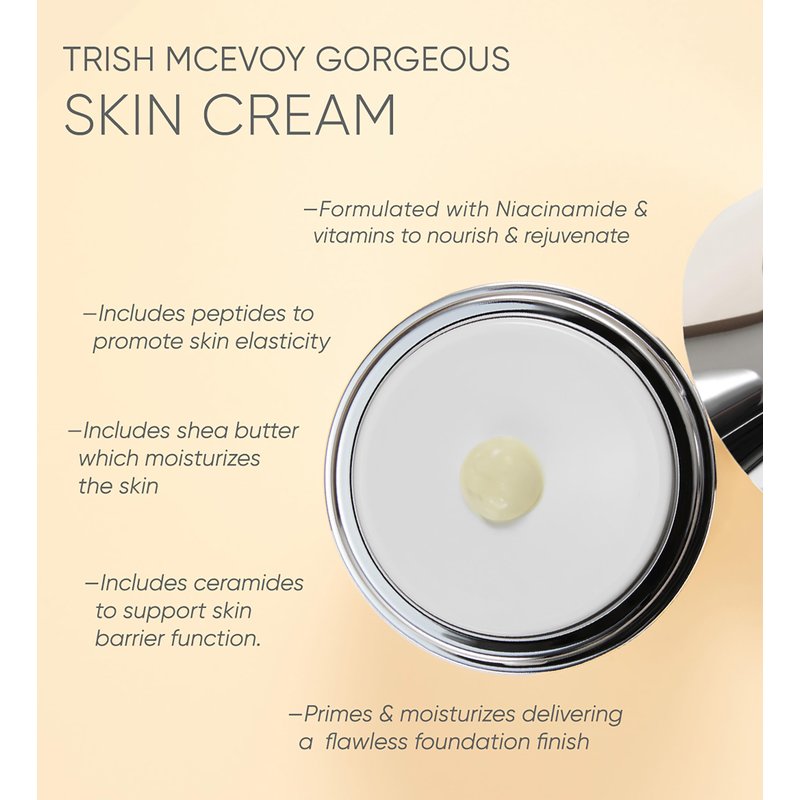 - Our Gorgeous Skin Cream is a lightweight lipid-rich formula infused with niacinamide, Vitamins B3, B5, C, and E, peptides, shea butter, and ceramides.